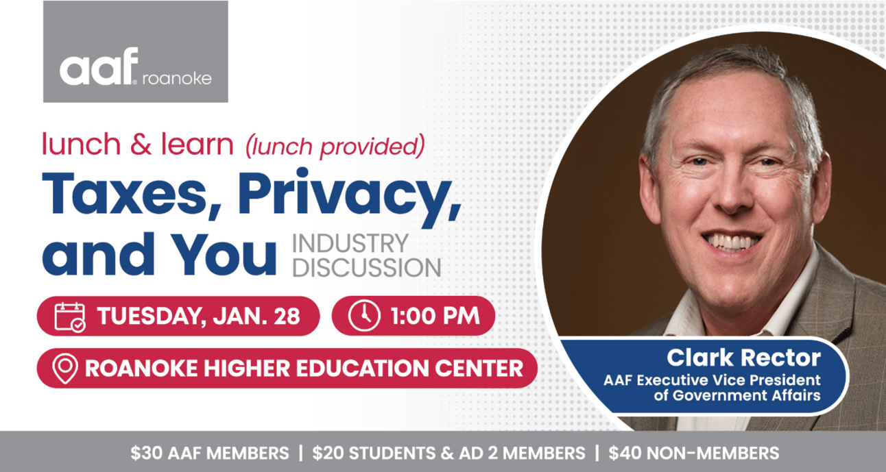 Taxes and privacy are major issues impacting the advertising and marketing industry in 2025. From new regulations to ensuring that our collective voice is heard on major issues, AAF Executive Vice President of Government Affairs Clark Rector will cover what’s happening in Washington, DC, and how it trickles into local businesses every day.